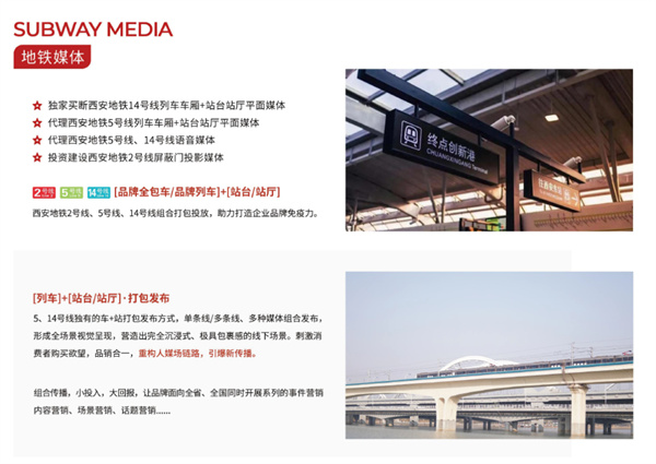 公司主要以城市戶外、高速戶外、地鐵媒體等場(chǎng)景媒體為主,廣泛分布于西安市區(qū),以及全陜向外輻射的11條高速路沿線。