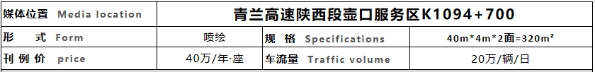 簡介—— 媒體位于青蘭高速陜西段宜川服務(wù)區(qū)3公里處,是進(jìn)入陜西境內(nèi)第一個(gè)跨線橋,此高速的媒體位置突出醒目,視野開闊,視覺沖擊力強(qiáng),