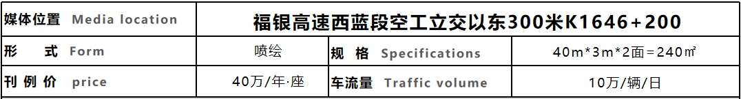 廣告牌位于福銀高速G70西安-藍田段影響西安、藍田、商洛旅游人群同時可抵達王順山國家森林公園、商南丹江漂流、金絲峽大峽谷國家森林公園等:省外可達六安萬佛湖神農(nóng)架、西陵峽、三峽、荊州古城、武當(dāng)山、黃山等等旅游景區(qū)交通四通八達,車流量巨大,位置突出,視野開闊,觸達品牌信息,車輛交會往返均可看到。